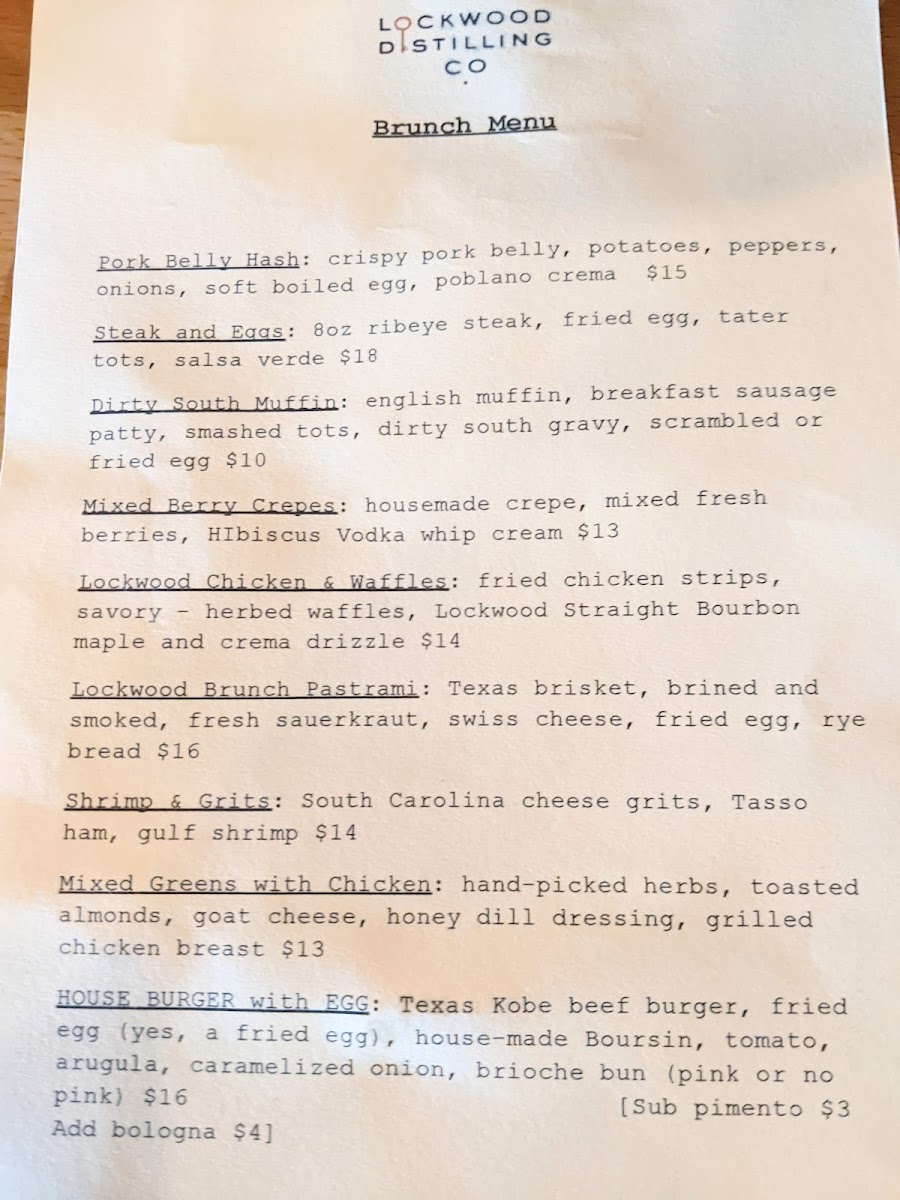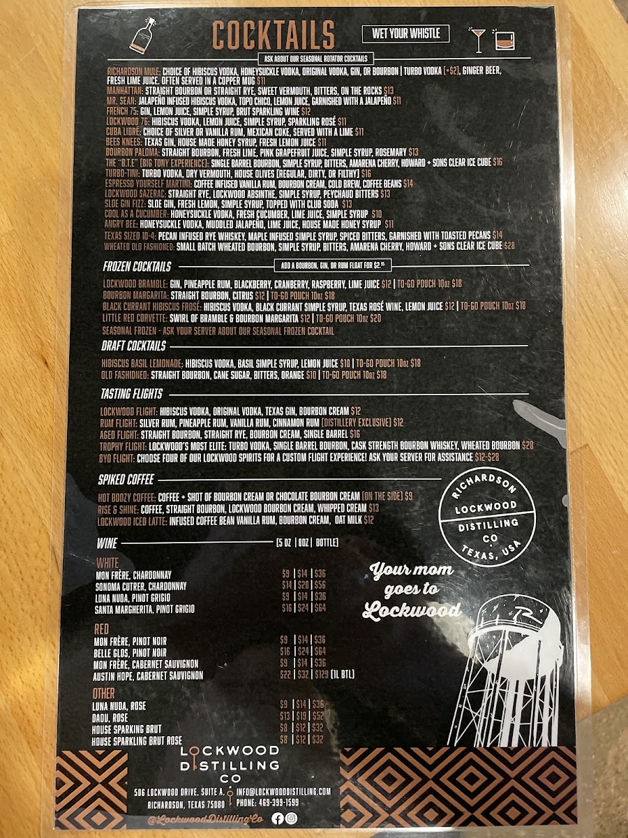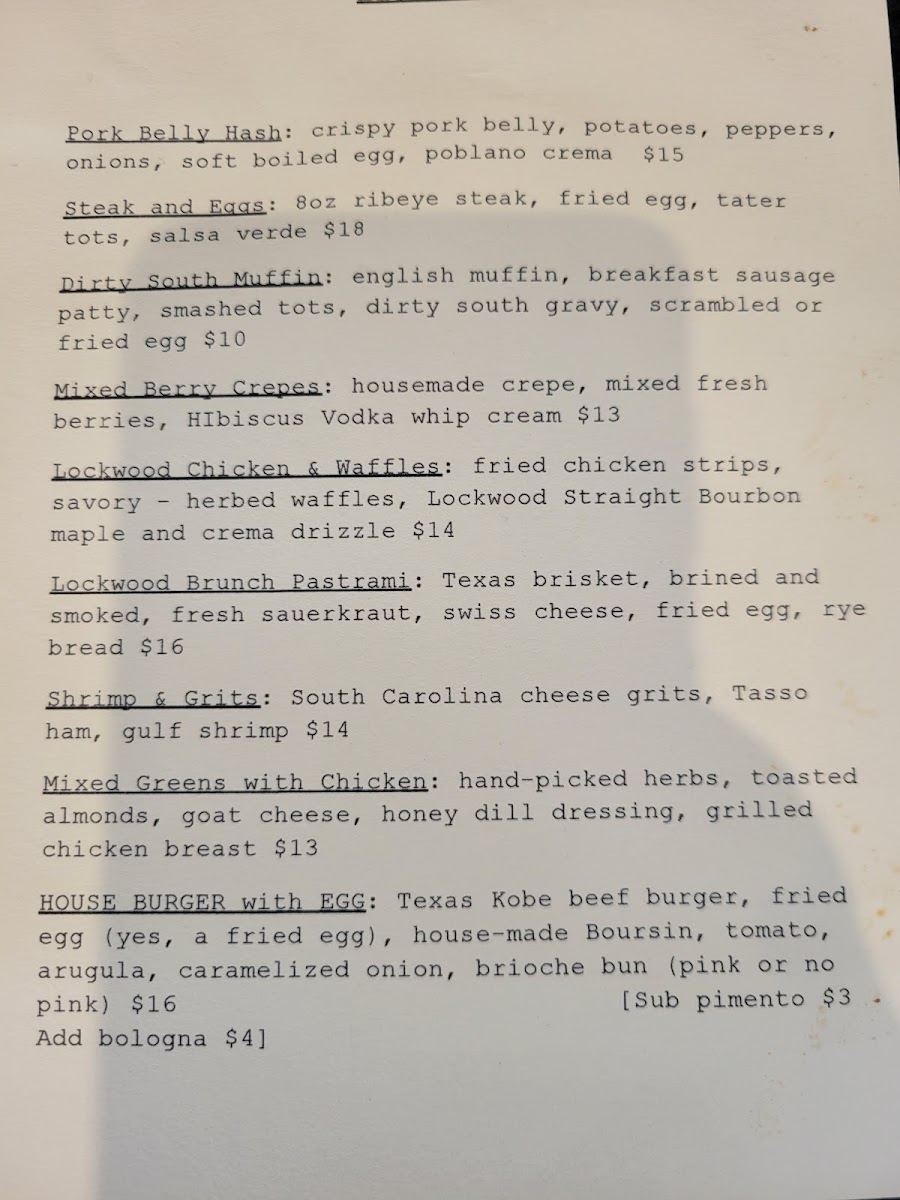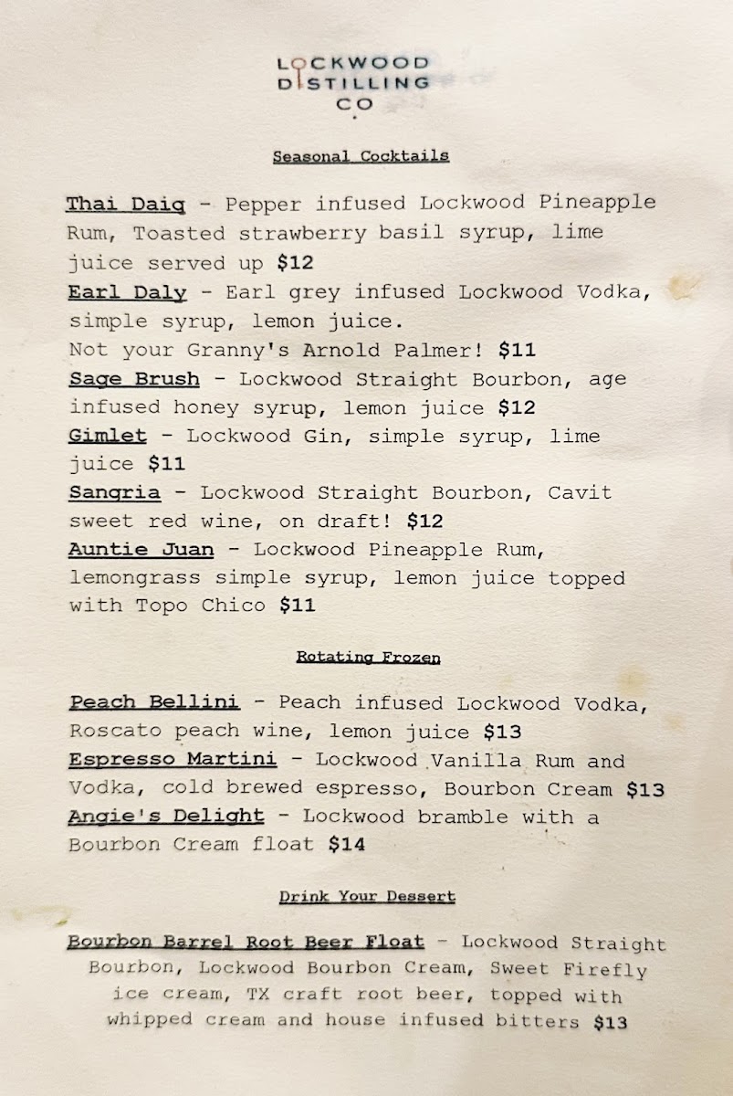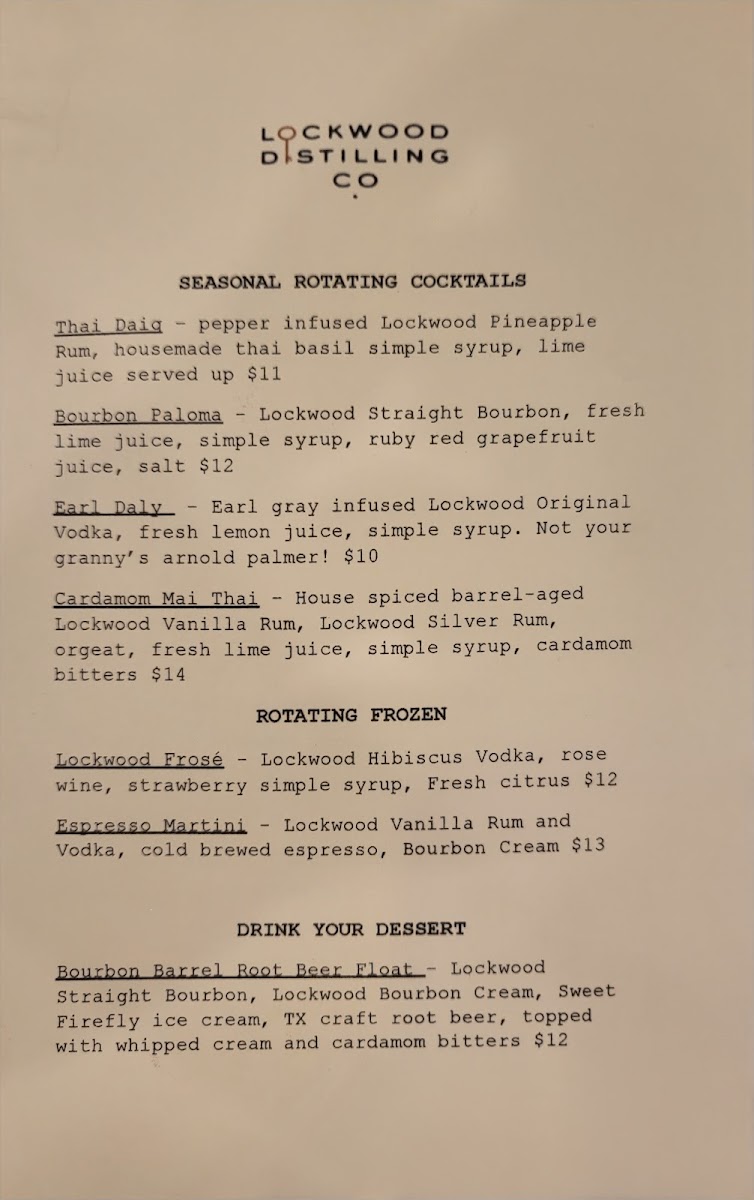 The menu at Lockwood Distilling Company - Richardson showcases a balanced blend of hearty, comforting dishes and thoughtfully crafted cocktails, designed to suit a laid-back yet refined atmosphere. Whether you're stopping in for brunch or settling down for a casual lunch or dinner, the offerings invite relaxed enjoyment with an elevated twist.